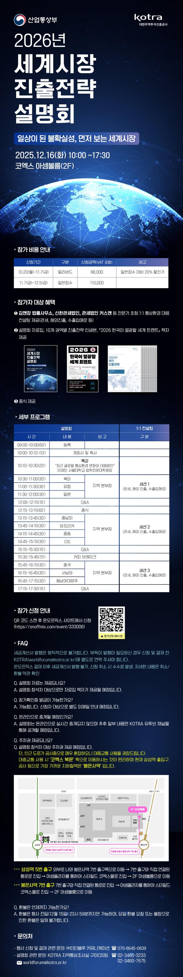 오는 12월 16일(화), 코엑스 아셈볼룸(2F)에서 『2026 세계시장 진출전략 설명회』를 KOTRA에서 개최합니다.